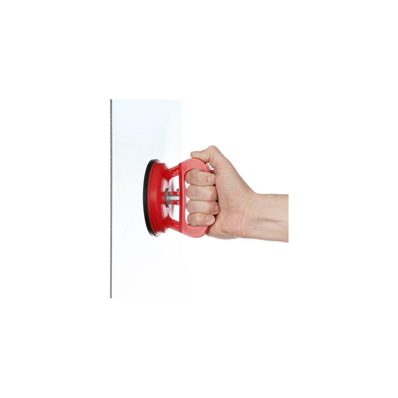 Держатель - присоска предназначен для удержания, установки, снятия и переноски стекла, плитки, пластмассы, листового металла и практически любого не пористого материала. За счет вакуумного соединения выдерживает вес до 40 кг. Состоит такая присоска из ручки - держателя, выполненной из пластика, и слоя высококачественной резины, за счет которой стекло и удерживается. Простая и надежная конструкция увеличивает эффективность работы. При наличии нескольких держателей удобно переносить даже широкогабаритные стёкла, стеклопакеты и различный листовой материал. Особенности Надежный вакуумный контакт с любой гладкой поверхностью, удерживает вес до 40 кг. Небольшой размер и удобная для хвата ручка, позволяют работать в замкнутом пространстве и на высоте. Простота в использовании сделала присоску незаменимым инструментом для стекольщиков и прочих мастеров. Материал корпуса: пластик; Диаметр троса: 120 мм; Максимальная нагрузка: 40 кг