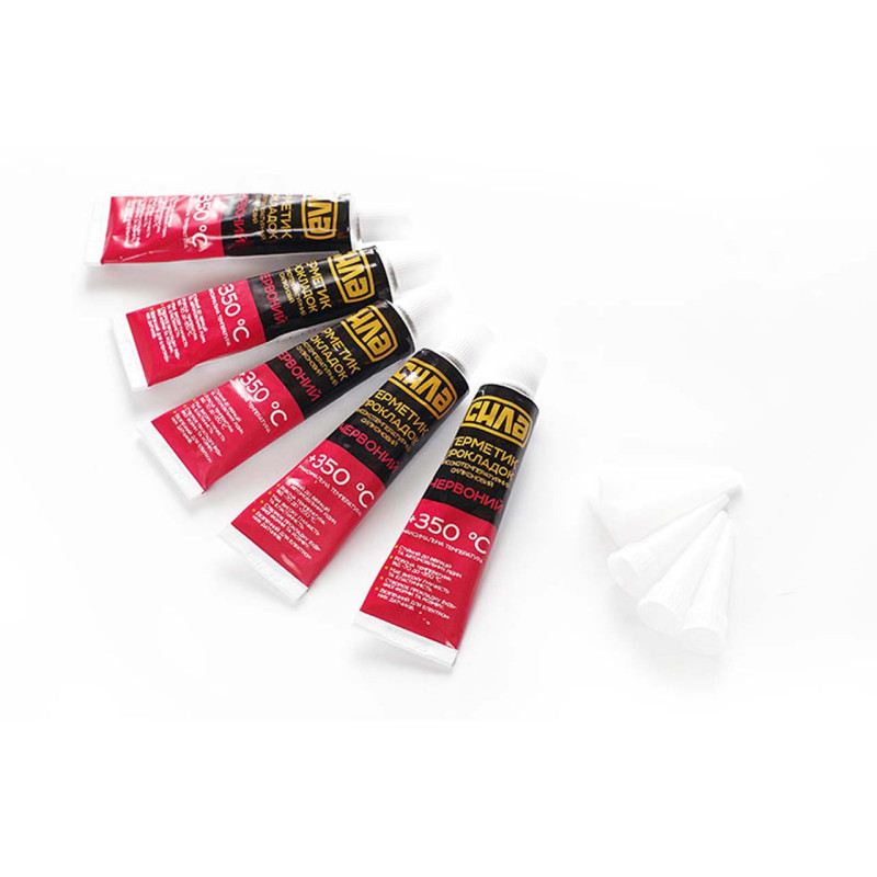 Герметик силиконовый высокотемпературный Сила - 25г красный предназначен для ремонта и замены прокладок, используемых при высоких температурах от -70 до + 350°С. 100% Натуральный силикон, устойчивый к автомобильным жидкостям. Безопасен для электронных датчиков. Сохраняет гибкость и эластичность после высыхания.