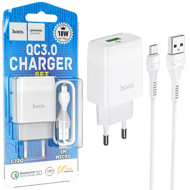 Зарядний пристрій з кабелем USB/microUSB 1 м HOCO C72Q 18 W 3 А білий