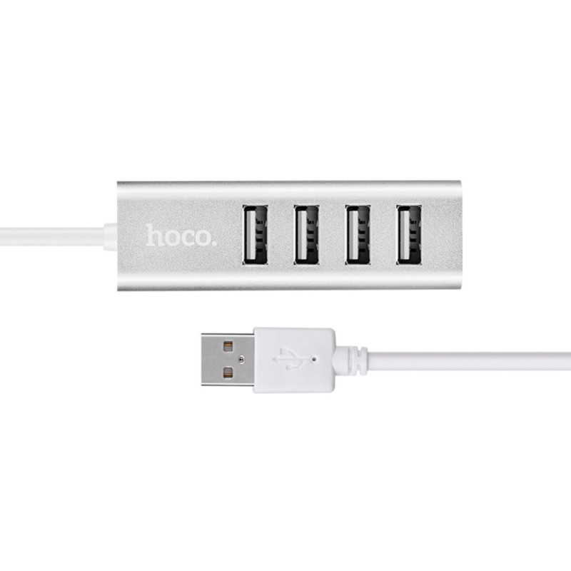USB-хаб зовнішній 4 порти HOCO HB1 0.8 м сріблястий