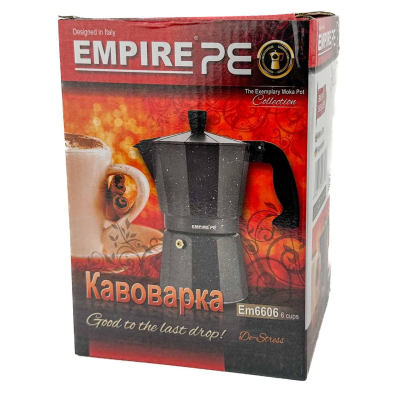 Кавоварка гейзерна Empire Козі EM-6606 створена для приготування чудової кави за сучасними італійськими технологіями. Використовуючи її на будь-яких кухонних плитах, за лічені хвилини ви зможете насолодитися чашкою ароматної, добре провареної кави.