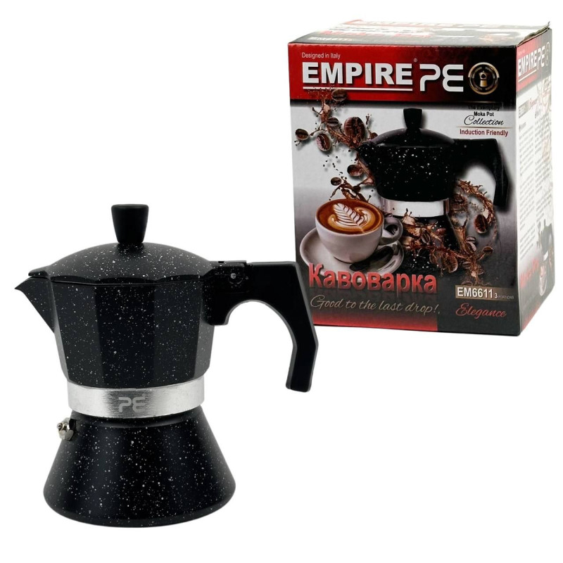 Кавоварка гейзерна алюмінієва Empire EM-6611 Граніт V 200 мл чорний
