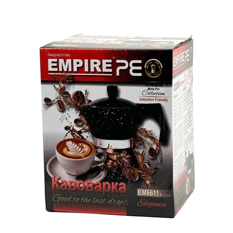 Кавоварка гейзерна Empire EM-6611 створена для приготування чудової кави за сучасними італійськими технологіями. Використовуючи її на будь-яких кухонних плитах, за лічені хвилини ви зможете насолодитися чашкою ароматної, добре провареної кави. Складається з трьох окремих відсіків - у нижній наливається вода, у середній насипається кава, а у верхній надходить готовий напій після закипання води. Особливість цієї кавоварки полягає в тому, що її можна ставити на великий вогонь і не турбуватися про те, що кава втече. Але водночас не варто тримати виріб на вогні довше, ніж треба, оскільки готовий напій може вийти надмірно міцним. Зверніть увагу: кавоварку необхідно ретельно мити відразу ж після кожного використання.