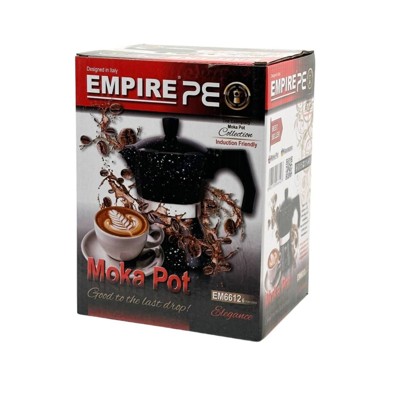 Кавоварка гейзерна Empire EM-6612 створена для приготування чудової кави за сучасними італійськими технологіями. Використовуючи її на будь-яких кухонних плитах, за лічені хвилини ви зможете насолодитися чашкою ароматної, добре провареної кави. Складається з трьох окремих відсіків - у нижній наливається вода, у середній насипається кава, а у верхній надходить готовий напій після закипання води. Особливість цієї кавоварки полягає в тому, що її можна ставити на великий вогонь і не турбуватися про те, що кава втече. Але водночас не варто тримати виріб на вогні довше, ніж треба, оскільки готовий напій може вийти надмірно міцним. Зверніть увагу: кавоварку необхідно ретельно мити відразу ж після кожного використання.