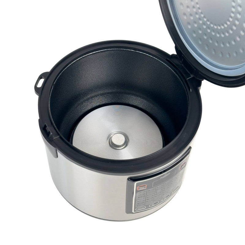 Мультиварка з чашею об’ємом 5 літрів і потужністю 900 Вт призначена для зручного та швидкого приготування повсякденних страв у домашніх умовах. Завдяки 30 автоматичним програмам та електронному керуванню з інформативним дисплеєм процес приготування не потребує постійного контролю. Містка чаша з антипригарним покриттям дозволяє готувати для всієї родини, а висока потужність гарантує рівномірний і швидкий нагрів. Модель оснащена функцією відкладеного старту та автоматичним підтриманням температури, що робить користування ще більш комфортним. Додатково передбачена функція скороварки для пришвидшеного приготування страв. Безпеку експлуатації забезпечують система захисту від перегріву та блокування кришки під час роботи. Корпус виготовлений із нержавіючої сталі та пластику.