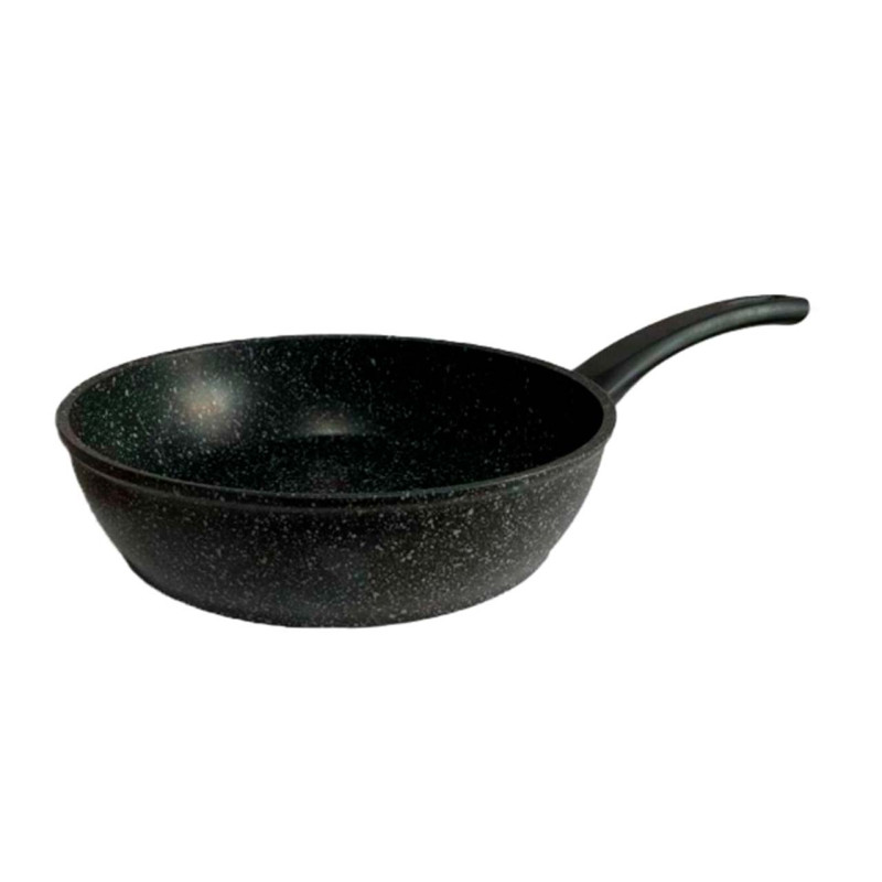 Сковорода антипригарная Biol - 240мм Black Stone глубокая. Глубокая сковорода идеально подойдет как для жарки простой яичницы, так и для тушения Ваших любимых блюд. Значительная толщина дна и стенок (3.6мм) препятствует деформации корпуса сковороды, и гарантирует ее долговечность. Полимерное антипригарное покрытие нового поколения имеет высокую износостойкость, а также абсолютно безопасно для здоровья человека. Благодаря антипригарному покрытию пища не пригорает даже если Вы готовите с минимальным количеством масла или совсем без него. Бакелитовая ручка не нагревается и имеет эргономическую форму. Сковороды с таким цветовым решением будут смотреться стильно на любой кухне.