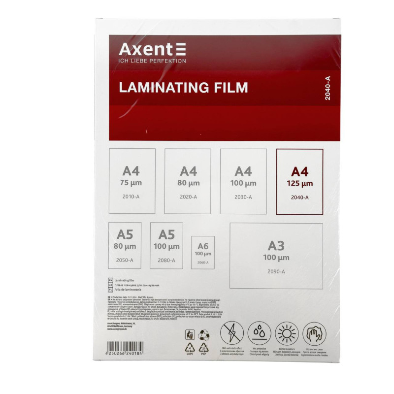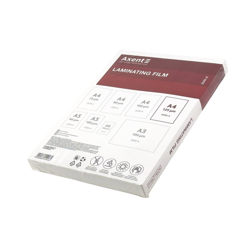 Плівка для ламінування А4 Axent 2040-А глянцева 216 х 303 мм 125 мкм 100 шт (RZN-23093519)
