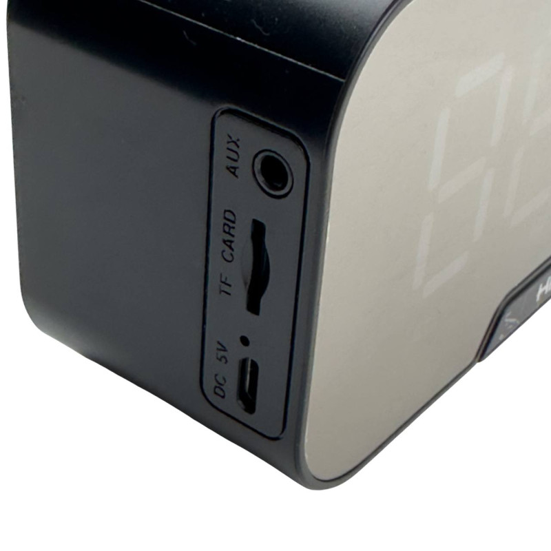 Це портативна колонка з годинником та будильником, яка підтримує Bluetooth. Колонка оснащена мікрофоном, дозволяючи вам комунікувати в повну гучність. Ємність акумулятора в 1400mAh і час повного заряду всього 2 години дозволяють вам насолоджуватися музикою до 5 годин.