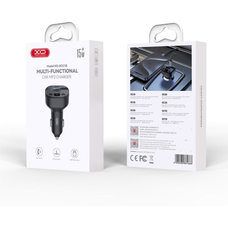 FM-трансмітер модулятор XO BCC18 Smart Bluetooth USB з дисплеєм чорний (RZN-23102683)