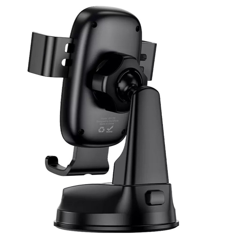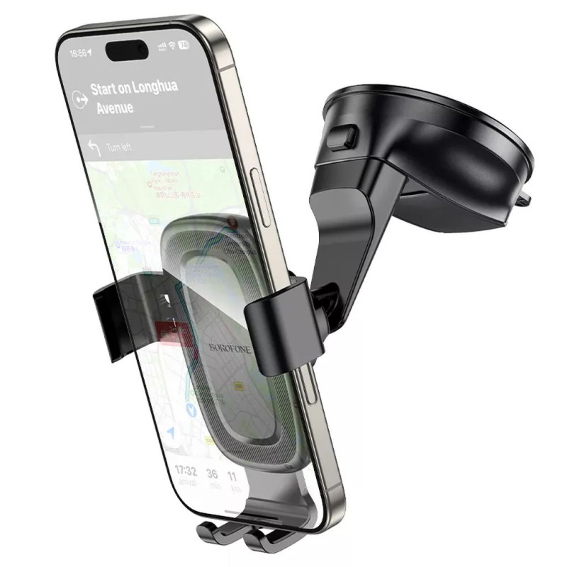 BOROFONE BH130 — універсальний автомобільний тримач для смартфона. Завдяки розсувному механізму він має широку сумісність. Аксесуар підійде для мобільних телефонів із діагонанню від 6.1 до 7 дюймів. За допомогою вакуумної присоски тримач BOROFONE BH130 встановлюється на торпедо (панель) або лобове скло. Пристрій оснащений системою обертання на 360°, а значить забезпечує універсальний кут огляду й дає можливість відрегулювати положення смартфона якнайзручнішим чином. Пристрій має надійну систему фіксації. BOROFONE BH130 має завжди актуальний класичний дизайн у чорному кольорі, який гармонійно виглядатиме в інтер’єрі автомобіля.