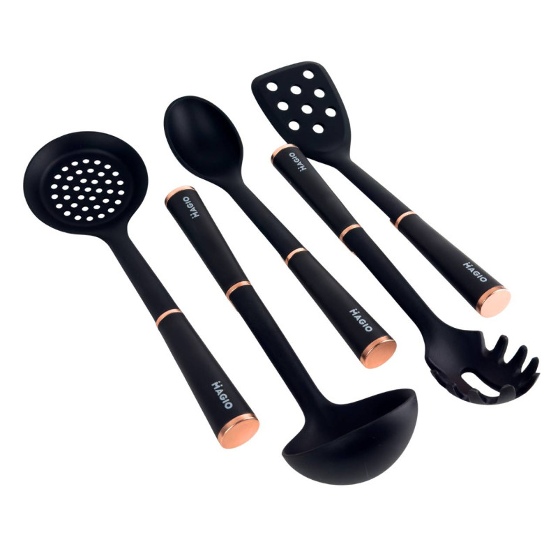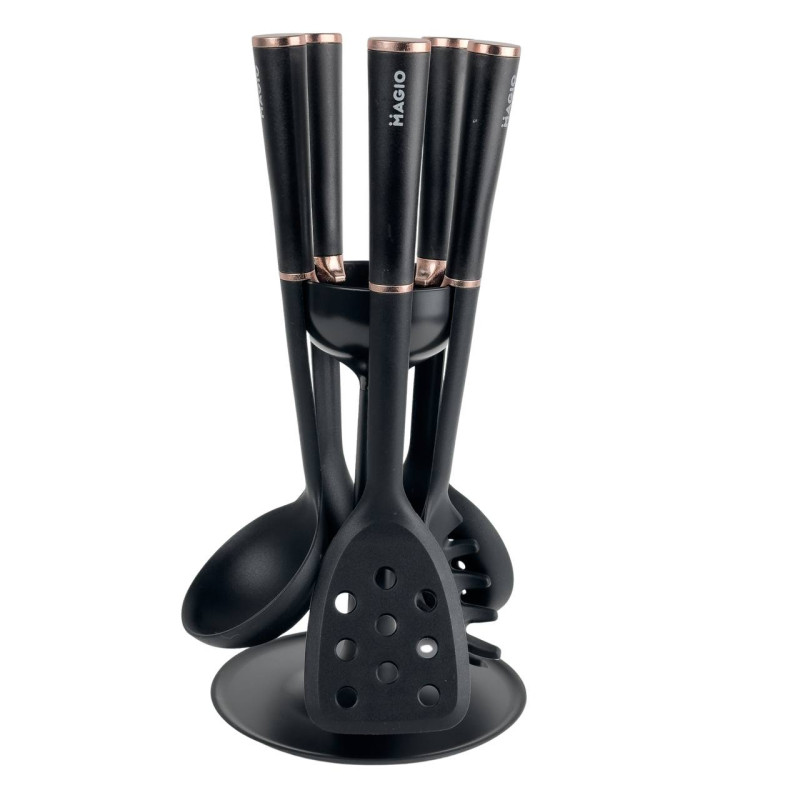 Набір кухонний MG-1140 — практичне приладдя із пластику та силікону. Ідеально підходить для всіх ваших повсякденних кулінарних потреб. Завдяки підставці можна легко зберігати їх на кухонній стільниці. Набір має сучасний дизайн, ідеально підходить для посуду з антипригарним покриттям, не вбирає запахів.