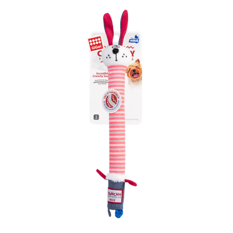 М'яка іграшка для собак Заєць з хрусткою шиєю та пищалкою Gigwi Crunchy 75516 28 см червоний
