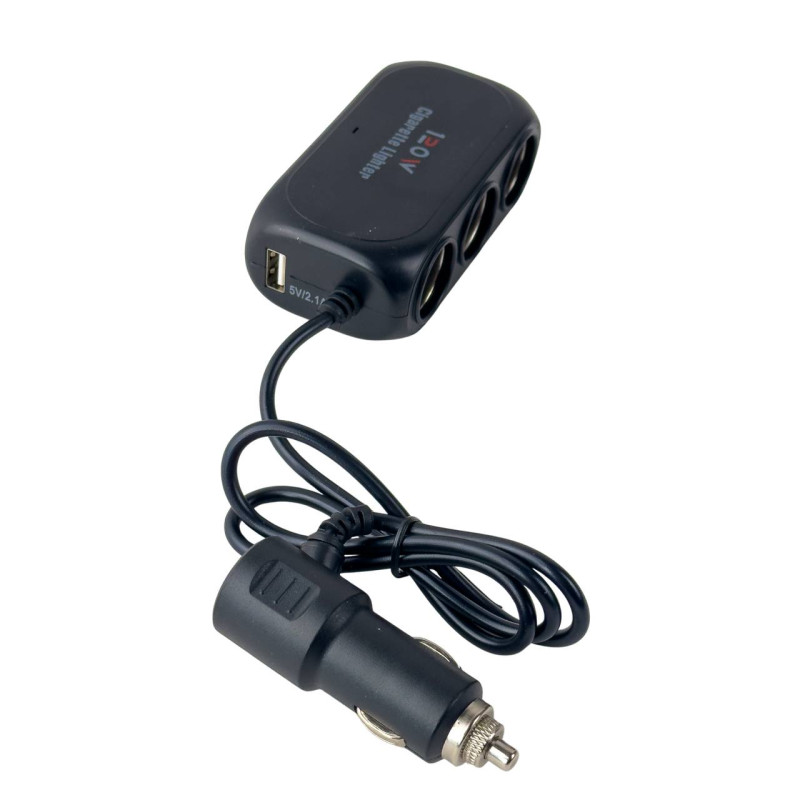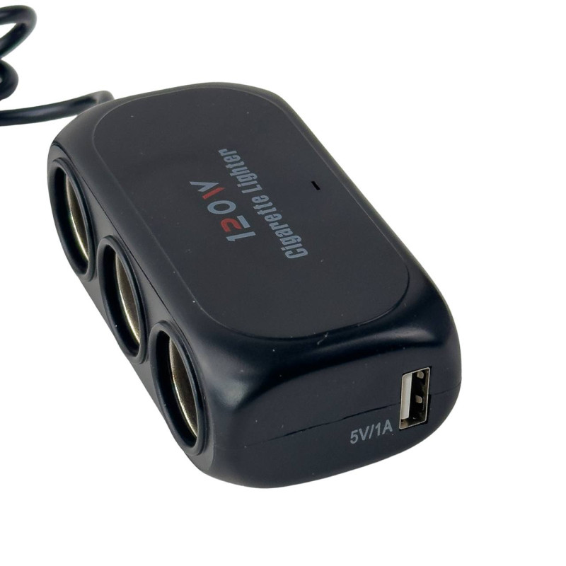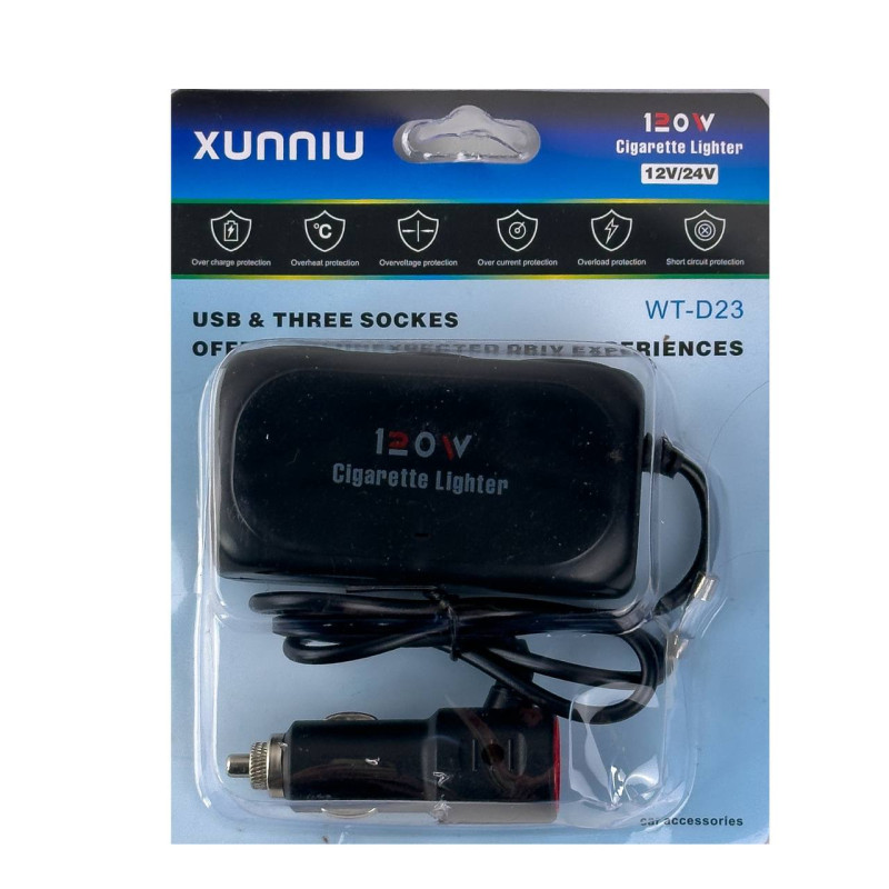 Розгалужувач прикурювача з подовжувачем Xunniu WT-D23 USB зарядний пристрій чорний (RZN-23103038)