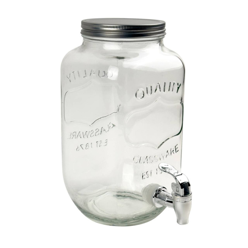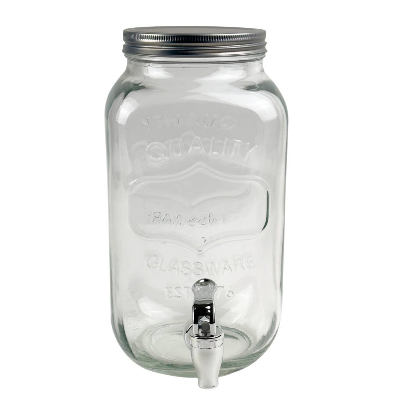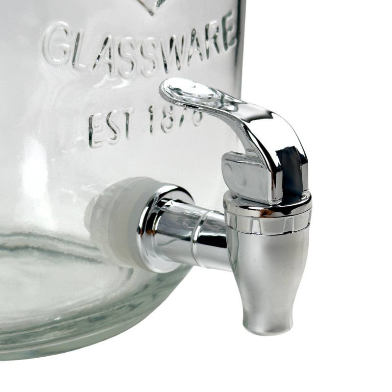 Диспенсер для напоїв від Viva виготовлений зі скла. Його отвір зверху закритий сталевою кришкою, а налити напій у склянку можна за допомогою краника, який відрізняється особливою довговічністю та підходить для дуже частого використання.