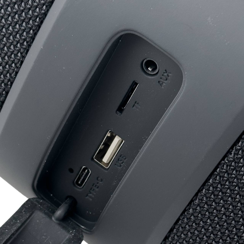 Портативна колонка має Bluetooth 5.3 з радіусом дії до 10 метрів. Підтримує підключення кількох пристроїв. Загальна вихідна потужність 50 Вт (2 динаміки по 25 Вт), що робить її досить гучною для вечірок та подорожей. Клас захисту IPX6, що означає стійкість до струменів води. Вбудований акумулятор 6000 мАг, що забезпечує до 4-6 годин роботи. Заряджається через порт Type-C. Крім Bluetooth, колонка підтримує FM-радіо, відтворення з USB-накопичувачів та карт пам яті TF, а також має AUX-вхід (3.5 мм mini-jack) та функцію TWS (для підключення двох колонок один до одного). Має RGB-підсвічування.