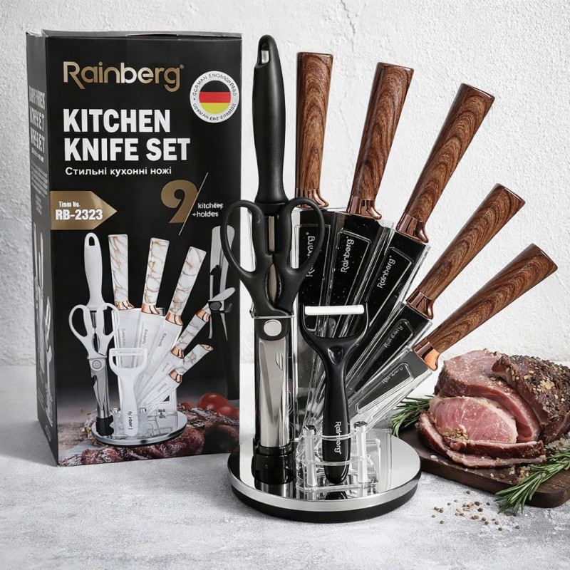 Набор кухонных ножей Rainberg RB-2323 - это практичное решение для ежедневного приготовления блюд на домашней кухне. Лезвия изготовлены из нержавеющей стали, что обеспечивает длительную остроту, усткоройчивость к коррозии и легкую очистку после использования.