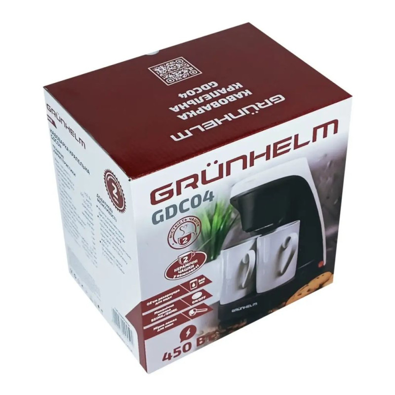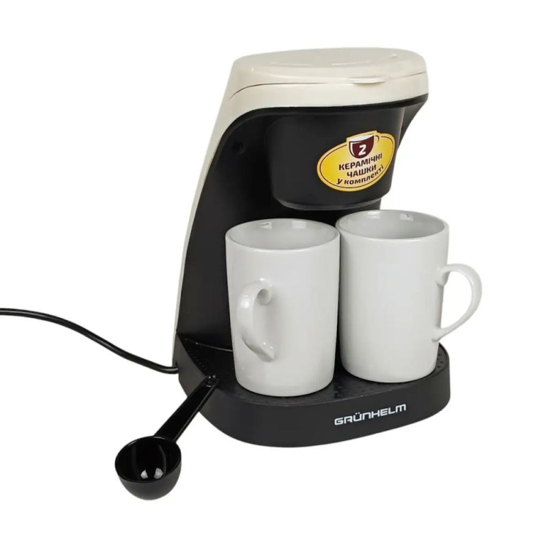 Кавоварка крапельна Grunhelm GDC04 450 Вт 0.24 л з чашками білий з чорним (RZN-23102495)