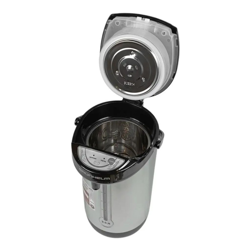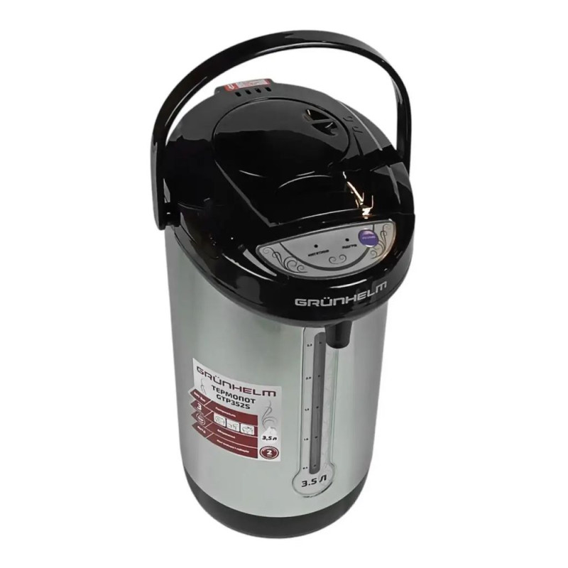 Термос електричний термопот Grunhelm GTP352S нержавіюча сталь 3.5 л чорний зі сріблястим