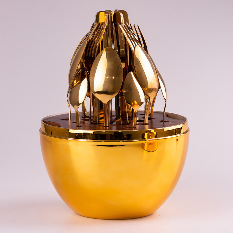 Набір столових приборів на 6 персон 24 шт з підставкою 29 х 19.5 см Золотий HP7882GL (LG-2026580597)