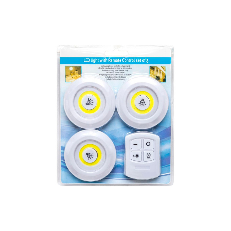 Набор из 3-х светильников с пультом дистанционного управления 2AAA 90х90х20мм
