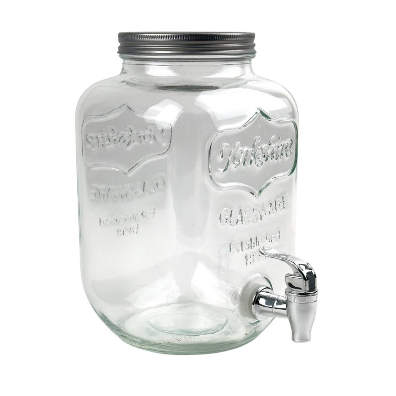 Диспенсер для напоїв від Viva виготовлений зі скла. Його отвір зверху закритий сталевою кришкою, а налити напій у склянку можна за допомогою краника, який відрізняється особливою довговічністю та підходить для дуже частого використання.
